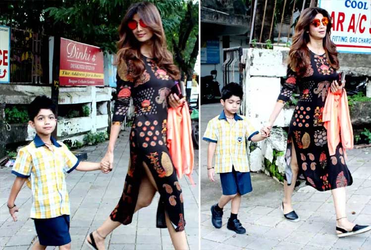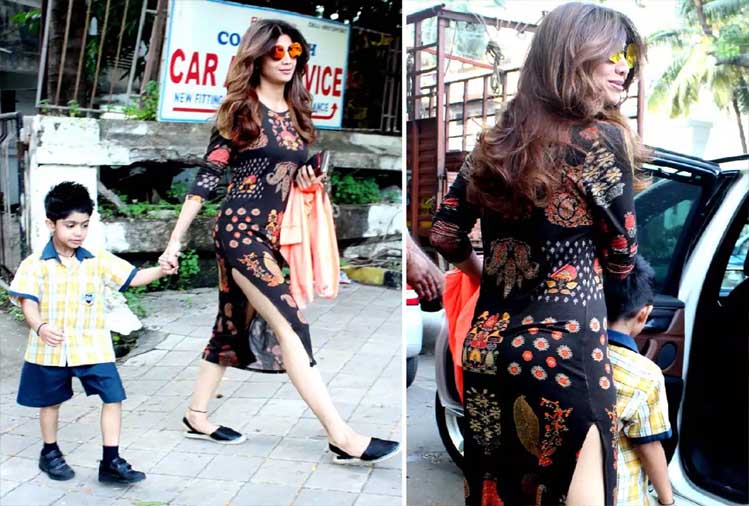 जब शिल्पा शेट्टी अपने बेटे के साथ सड़क पर स्पॉट हुईं, तो लोग उनकी ड्रेस देखकर चौंक गए थे। इस बीच, अभिनेत्री ने एक रंगीन प्रिंट के साथ एक काले रंग का कुर्ता पहना था। इस गोल नेकलाइन और तीन-चौथाई आस्तीन वाले कुर्ते की फिटिंग शानदार थी। जिसमें शिल्पा का लुक बिल्कुल अलग था।