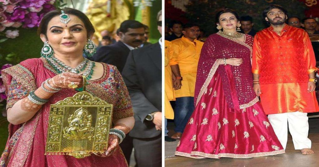 नीता अंबानी का ऐसा ही लुक पिछले साल गणेश पूजा में भी देखने को मिला था। पूजा के दौरान, उन्होंने प्रसिद्ध फैशन डिजाइनर अबू जानी संदीप खोसला द्वारा डिज़ाइन किया गया लाल पोशाक पहना था। इतना ही नहीं बल्कि जब नीता अंबानी अपनी शादी में आकाश अंबानी और श्लोक मेहता को आमंत्रित करने के लिए मुकेश अंबानी के साथ सिद्धिविनायक मंदिर पहुंचीं थी, तो वे लाल रंग के सिल्क सूट सिल्वर में भी दिखीं थी।