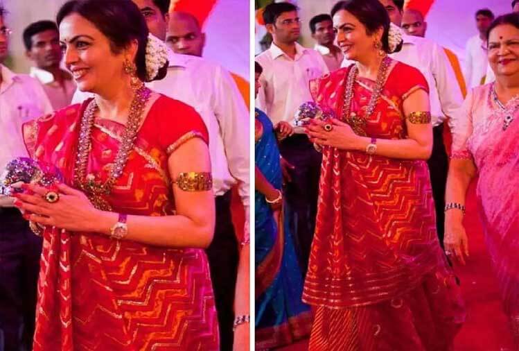 नीता अंबानी अपने फैशन के लिए भी जानी जाती हैं, उन्हें अक्सर एक नए रूप में देखा जाता है, लेकिन वह किसी भी पूजा के दौरान केवल लाल रंग में दिखाई देती हैं।