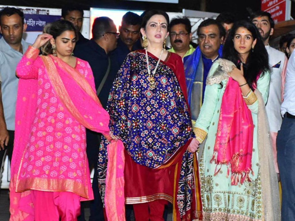 नीता अंबानी हर पूजा में लाल रंग पहनती हैं और पूजा में भारी आभूषण के साथ शामिल होती हैं। उनका मानना है कि जब तक गृहिणी घर की सदस्य नहीं होगी, तब तक भगवान प्रसन्न नहीं होंगे।